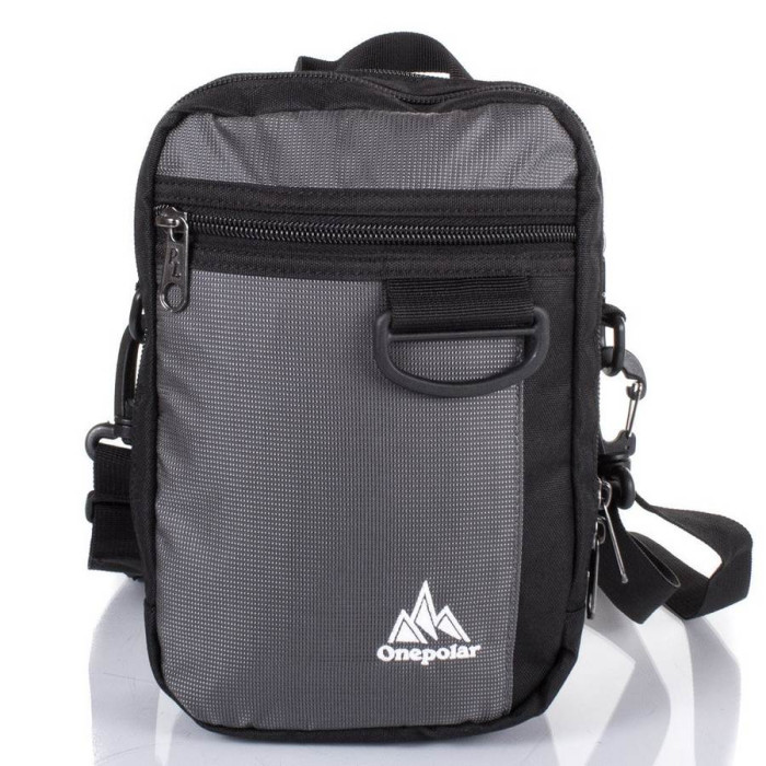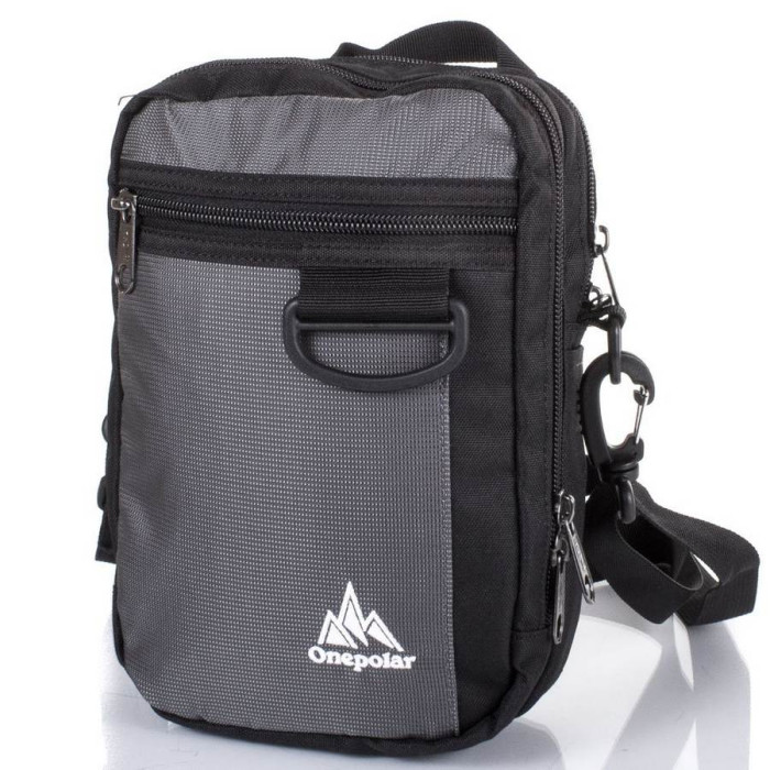 Сірий колір освіжає цю чоловічу сумку. Разом з білим, виразним логотипом бренду ONEPOLAR - виготовлювача аксесуара - він додає виробу свіжості без втрати практичності, адже деталі викроєні з ноского матеріалу, який легко відчистити від забруднень. Рівні шви, акуратні оздоблювальні строчки, масивна, але легка і міцна фурнітура надають ансамблю зовнішньої привабливості, яка вказує на те, що сумка буде носитися довго, залишаючись зручною в різних ситуаціях. Всередині одного з відділень власник в потрібний момент знайде свої ключі, якщо скористається спеціальним ремінцем з кільцем, що пристібається за допомогою карабіна, а масу дрібних предметів можна розкласти в окремі кишені, яких тут достатньо. Купити за вигідною ціною брендову сумку з пристібних плечовим ременем і ручкою можна в нашому магазині.