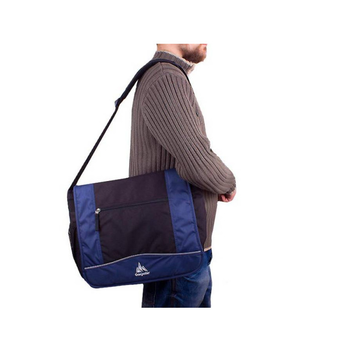 Регульований по довжині плечовий ремінь з м'якою наплечником робить сумку більш зручною для перенесення. Сумка закривається широким клапаном на липучку, з фронтальної сторони має кишеню для документів на блискавці і світловідбиваючу вставку. З тильного боку знаходиться велика кишеня для документів на блискавці. Збоку є вентильований сітчастий кишеню на гумці для пляшки з водою. Під клапаном сумка застібається блискавкою і має два основних відділення, які розділені великою кишенею на блискавці; в одному відділенні є кишеня середнього розміру, який застібається блискавкою. Також під клапаном з фронтальної сторони є безліч кишень: один великий кишеня на липучці; один сітчастий кишенька для дрібниць, який застібається блискавкою; 4 спеціальних кишені під візитки або електронні картки; 2 кишені для ручок або стилусів. Матеріал: поліестер Ripstop Polyester Oxford 600D PU. Колір:синій, чорний. Фурнітура: Duraflex - високоякісна пластикова фурнітура виробництва одного зі світових лідерів National Molding Corporation (США). Пряжки виготовлені з особливо міцного поліаміду марки 6.6 фірми DuPont. Фурнітура бездоганно зарекомендувала себе в експлуатації за будь-яких температур і високих навантажень. Колір фурнітури: чорне срібло. Зовнішні розміри сумки: 37*28*11 см. Сумка упакована в поліетиленовий пакет. Виробник: Onepolar (Китай). Гарантія: 2 роки.