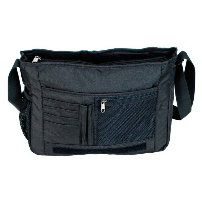 Зручна міська повсякденна сумка на плече підійде як для документів формату А4, так і для ноутбука. Регульований по довжині плечовий ремінь з м'якою наплечником робить сумку більш зручною для перенесення. Сумка закривається широким клапаном на липучку, з фронтальної сторони має кишеню для документів на блискавці і світловідбиваючу вставку. З тильного боку знаходиться велика кишеня для документів на блискавці. Збоку є вентильований сітчастий кишеню на гумці для пляшки з водою. Під клапаном сумка застібається блискавкою і має два основних відділення, які розділені великою кишенею на блискавці; в одному відділенні є кишеня середнього розміру, який застібається блискавкою. Також під клапаном з фронтальної сторони є безліч кишень: один великий кишеня на липучці; один сітчастий кишенька для дрібниць, який застібається блискавкою; 4 спеціальних кишені під візитки або електронні картки; 2 кишені для ручок або стилусів. Матеріал: поліестер Ripstop Polyester Oxford 600D PU. Колір: чорний + сірий. Фурнітура: Duraflex - високоякісна пластикова фурнітура виробництва одного зі світових лідерів National Molding Corporation (США). Пряжки виготовлені з особливо міцного поліаміду марки 6.6 фірми DuPont. Фурнітура бездоганно зарекомендувала себе в експлуатації за будь-яких температур і високих навантажень. Колір фурнітури: чорне срібло. Зовнішні розміри сумки: 37*28*11 см. Сумка упакована в поліетиленовий пакет. Виробник: Onepolar (Китай). Гарантія: 2 роки.