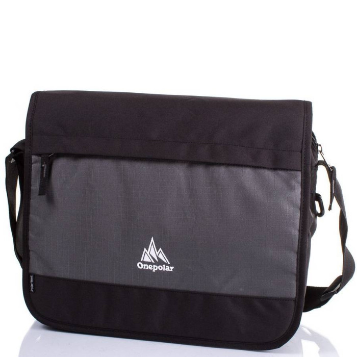 Якісна чоловіча сумка на кожен день. Завдяки яскравому кольору сумки, ви не залишитеся осторонь. Сумка закривається широким клапаном на липучці і блискавкою. З лицьового та зворотного боку виробу є кишені на блискавці. Збоку сумки присутній кишеня на липучці для мобільного телефону. Ремінь регулюється, максимальна довжина – 145 см. Всередині виробу є одне відділення, у якому є кишенька на блискавці. Під клапаном є один маленький сітчастий кишеню на блискавці, кишені під документи формату А4,чотири кишеньки для карток і 2 кишеньки для ручок. Сумка виконана з матеріалу Polyester Oxford 600D PU. Фурнітура: Duraflex. Підкладка виконана із щільної тканини чорного кольору. Об'єм: 15 л. Матеріал: поліестер. Колір: чорний з сірим. Колір фурнітури: срібло. Розміри (X*Y*Z): 33*28*10 см. Сумка упакована в поліетиленовий пакет. Виробник: Onepolar (Китай). Гарантія: 2 роки.