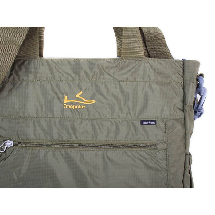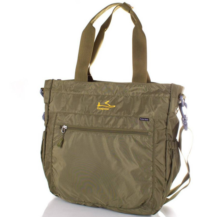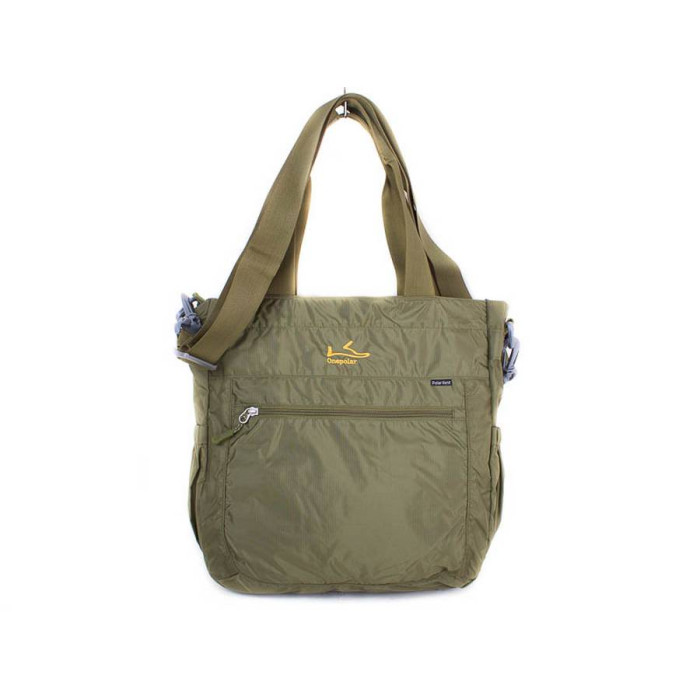 На лицьовій стороні сумки є прорізна кишеня на блискавці. На задній стороні виробу також є прорізна кишеня на липучці. Усередині сумки одне відділення і накладна кишеня на блискавці. По боках вироби присутні накладні кишені для аксесуарів або пляшки з водою. Довжина ручок для носіння сумки в руці становить 50 см, а висота від крайньої точки до ручки сумки - 22 см Довжина ручки для носіння сумки через плече регулюється і становить 93-155 см, а висота від крайньої точки до ручки сумки - 45-90 см. Матеріал: поліестер. Колір: зелений. Колір фурнітури: срібло. Фурнітура: Duraflex - високоякісна пластикова фурнітура виробництва одного зі світових лідерів National Molding Corporation (США). Зовнішні розміри сумки: 34*35*10 см. Об'єм: 20 л. Документи формату А4 поміщаються в сумку. Сумка упакована в поліетиленовий пакет. Гарантія: 2 роки. Країна походження торгової марки: Onepolar (Китай).