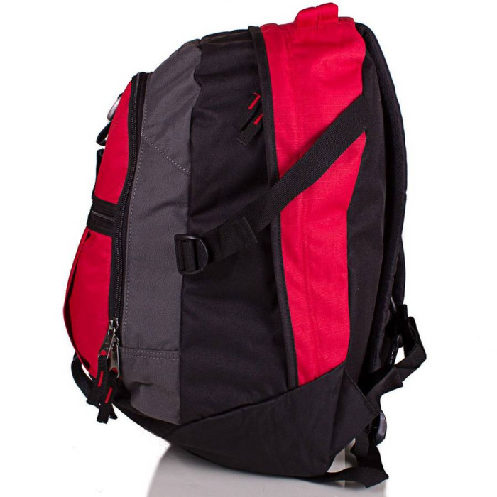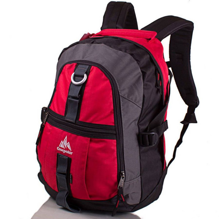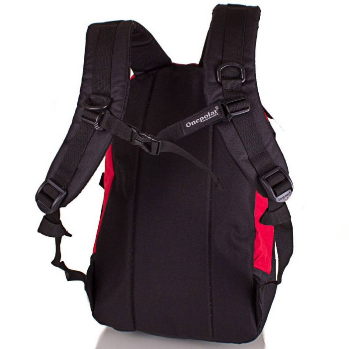 Тип конструкції: м'який рюкзак. Спинка рюкзака прошита особливим чином, що значно покращує процес вентиляції спини. Кількість основних відділень: 1. Всередині рюкзак має спеціальну накладну кишеню на блискавці для плеєра або смартфону, а також велика накладна кишеня. Кількість додаткових відділень: 1. Всередині нього знаходиться органайзер для різного роду дрібниць (включає велика накладна кишеня, два кармашка поменше (накладної та прорізної на блискавці), два відділення для ручок, олівців або стилусів). На лицьовій частині рюкзака є місткий прорізна кишеня на блискавці, а також кріплення і підвіси для різного спорядження. Виріб має компресійні стяжки (2 бічні), які служать не тільки для регулювання об'єму рюкзака, але і для кріплення/фіксації різних предметів (наприклад, каремат або килимка для йоги). Плечові лямки мають анатомічну форму. Вони забезпечені щільною подкладой з поропласту, а їх тильна сторона виконана з сітки, яка не перешкоджає вільній циркуляції повітря. Довжина лямок може регулюватися за допомогою пластикових пряжок. Також виріб має зручну ручку, за допомогою якої аксесуар можна переносити в руці або повісити на гачок або вішалку. На лямках є грудна стяжка, яка не тільки фіксує рюкзак, але і сприяє кращому розподілу ваги. Висоту і ширину грудної стяжки можна регулювати. Виріб можна використовувати в якості міського рюкзака, для активного відпочинку, для нетривалих поїздок та походів вихідного дня. Матеріал: Polyester Oxford. Колір: червоний, сірий, чорний. Колір металевої фурнітури: чорне срібло. Аксесуар оснащений міцною фурнітурою японської фірми YKK (фастекси, рамки, фіксатори, карабіни тощо). Деталі виготовлені з поліацетали (POM). Матеріал володіє низьким коефіцієнтом тертя, високу втомної міцністю, поєднує високу твердість і стійкість до ударних навантажень (у тому числі при низьких температурах). Зовнішні розміри рюкзака: 28*45*16 см. Об'єм: 25 л. Вага: 560 р. Усі відділення рюкзака закриваються за допомогою блискавки з двома собачками. Виріб упаковано в поліетиленовий пакет. Документи формату А4 поміщаються в рюкзак. Країна походження торгової марки Onepolar - Китай. Гарантія: 2 роки.