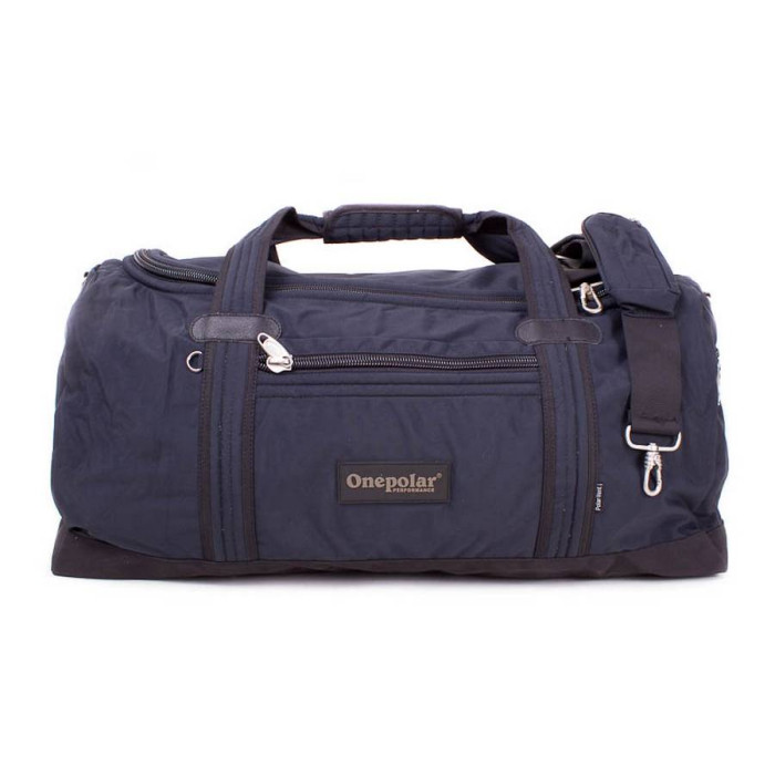 Місткість, міцність і якість – особливості цієї дорожньої сумки. Вона забезпечить вам комфорт в поїздках і збереження ваших речей. Всередині сумки є одне велике відділення і кишенька на блискавці. З лицьового боку і з одного боку виробу є прорізні кишені на блискавці. Сумка має дві ручки для перенесення виробу в руці, довжина ручки - 58 см, а висота від крайньої точки сумки до ручки - 20 см. Знімний і зручний плечовий ремінь з регульованою довжиною має м'яку підкладку для плеча, максимальна довжина ременя – 170 см. На ремені присутній накладна кишеня на блискавці. Сумка виконана з матеріалу Polyester Oxford PU 450D. Фурнітура виготовлена з високоякісного пластику - Duraflex. На дні сумки є ніжки, щоб виріб не пачкався і не царапався. Підкладка виконана із щільної тканини чорного кольору. Купити таку сумку ви зможете в нашому інтернет-магазині. А ціна вас приємно порадує. Застібається виріб блискавкою. Об'єм: 45 л Матеріал: поліестер. Колір: темно-синій. Колір фурнітури: срібло. Розміри (X*Y*Z): 60*28*25 см. Сумка упакована в поліетиленовий пакет. Країна походження торгової марки: Onepolar (Китай). Гарантія: 2 роки.