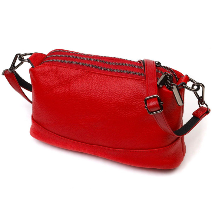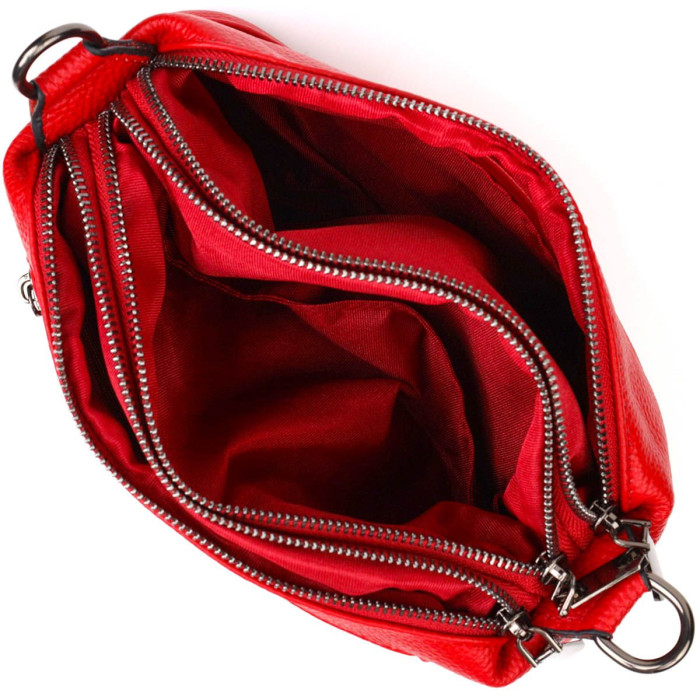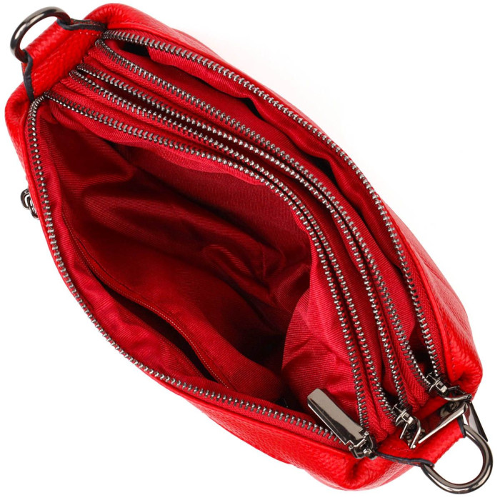 Приваблива жіноча сумочка з натуральної шкіри високої якості. Виріб дуже зручний, можна носити на плечі, через плече та під рукою. Модель доповнена фурнітурою кольору темного срібла. Аксесуар має три основні відділення у яких дві кишеньки - на блискавці та відкритого типу, а також кишеня на блискавці зовні. Закривається модель на блискавки, кожне відділення. Ідеальний варіант для будь-якої дівчини на будь-який сезон.