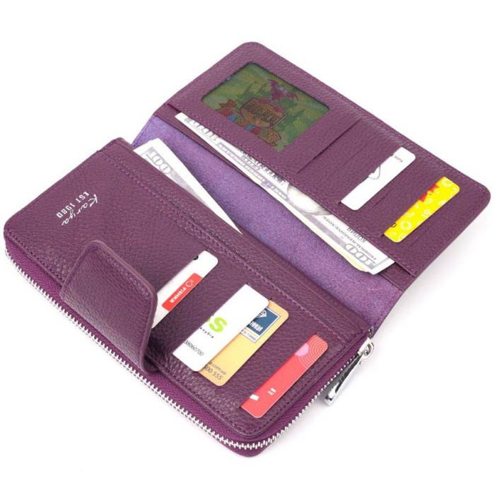 Яскравий жіночий гаманець із якісної натуральної шкіри. Виріб складається з двох частин, перша - для купюр у нескладеному вигляді та монет, що закривається на блискавку, друга для карток та документів, закривається клапаном на магніт. Запакований аксесуар у фірмову коробку та пакет бренду. Вироби з натуральної шкіри завжди будуть чудовим подарунком для близької людини.