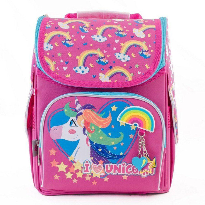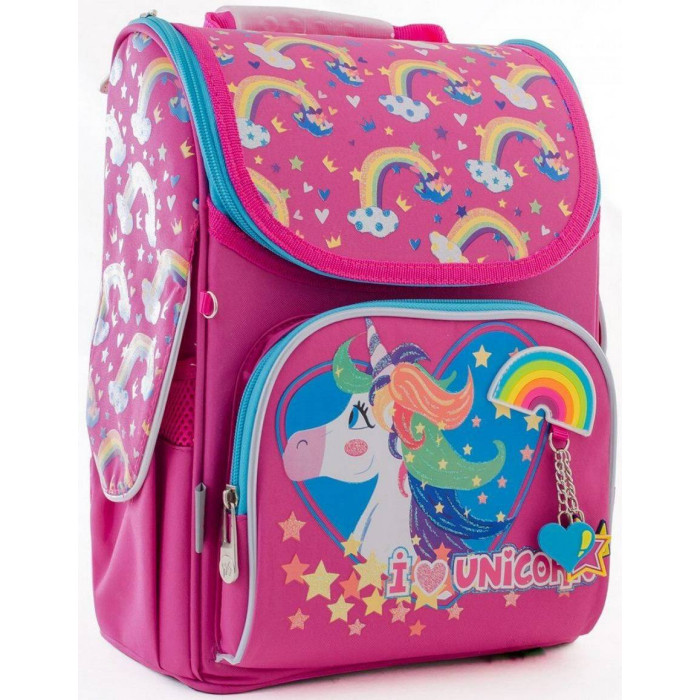 Шкільний каркасний ранець YES SCHOOL 26х34х14 см 12 л для дівчаток H-11 Unicorn blue (555196)