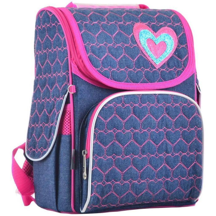 Шкільний каркасний ранець YES SCHOOL 26х34х14 см 12 л для дівчаток H-11 blue Hearts (555208)