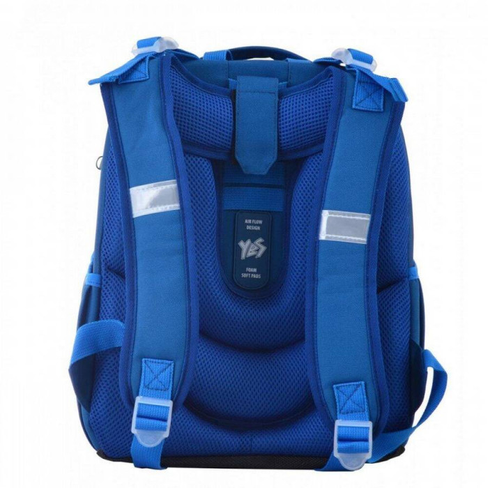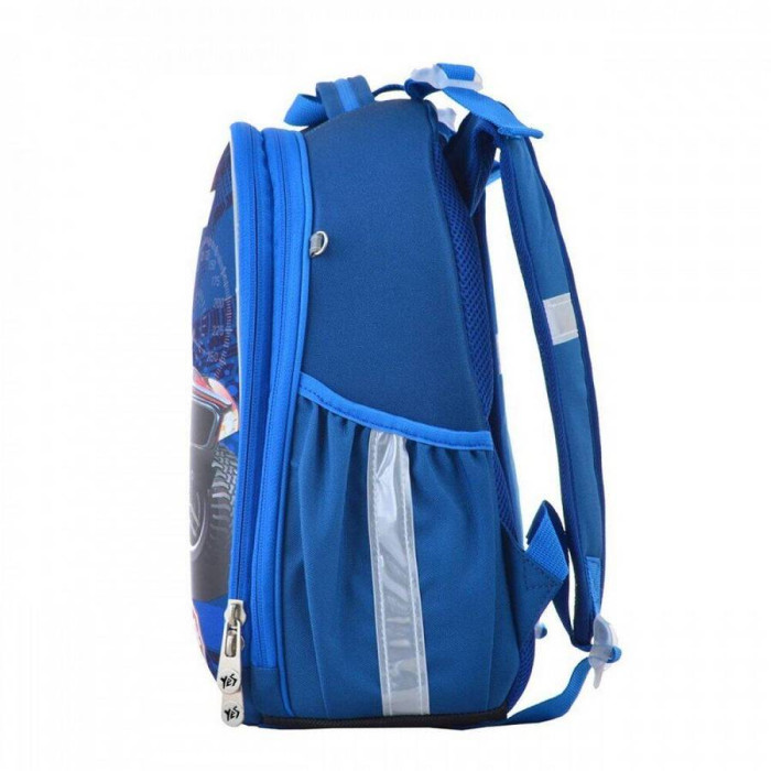 Особливості: виготовлений з матеріалу EVA (передня жорстка частина) і водовідштовхувального поліестеру, що забезпечує збереження речей в будь-яку негоду, а щільний каркас гарантує повну цілісність вмісту. Ортопедична спинка з елементами "дихаючої" сітки Air Mesh зменшує напругу м'язів спини, плечей і шиї, і забезпечує правильну поставу. Також у рюкзака комфортні м'які лямки регульованої довжини. Є зручна щільна ручка для носіння в руці. Для безпеки вашої дитини передбачені світловідбиваючі елементи.