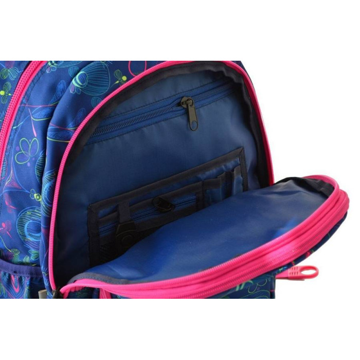 Кількість відділів: 1 основний відділ, 2 додаткових відділи, додатковий карман для плеєра з висновком для навушників, 1 передня кишеня на блискавки, внутрішня кишеня для планшета, кишеню для мобільного телефону, кишеня на блискавці, зручний органайзер, кільце для ключів, 2 відкритих бічних кишені і 1 бокова кишеня на блискавці