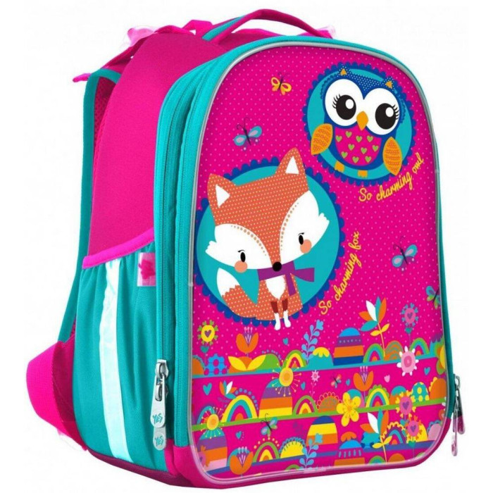 Кількість відділів: 2 основних відділення. Всередині кишеня, роздільник для зошитів, кишеня-гаманець. Зовні є 2 бічних кишені для пляшки з водою.