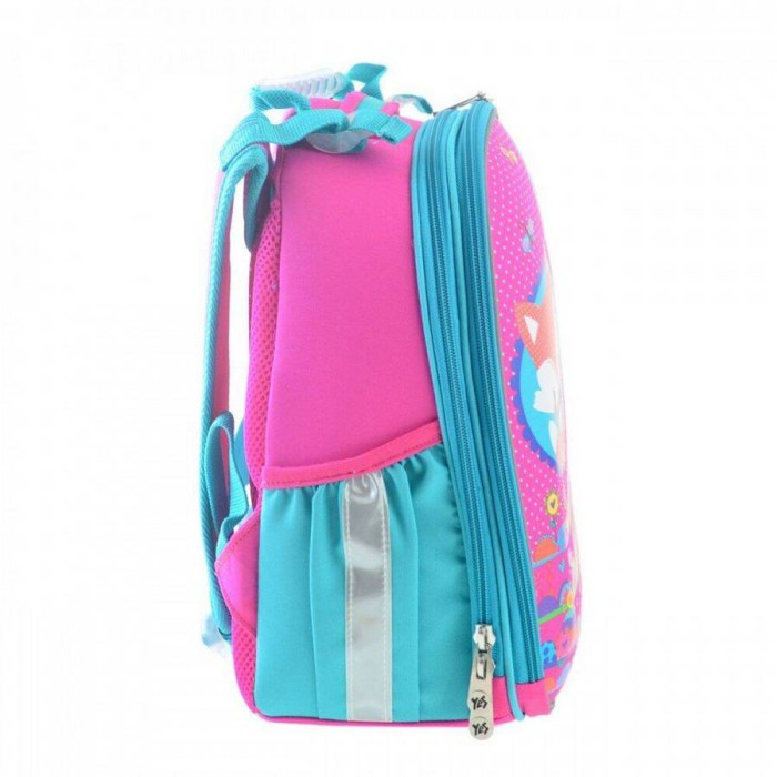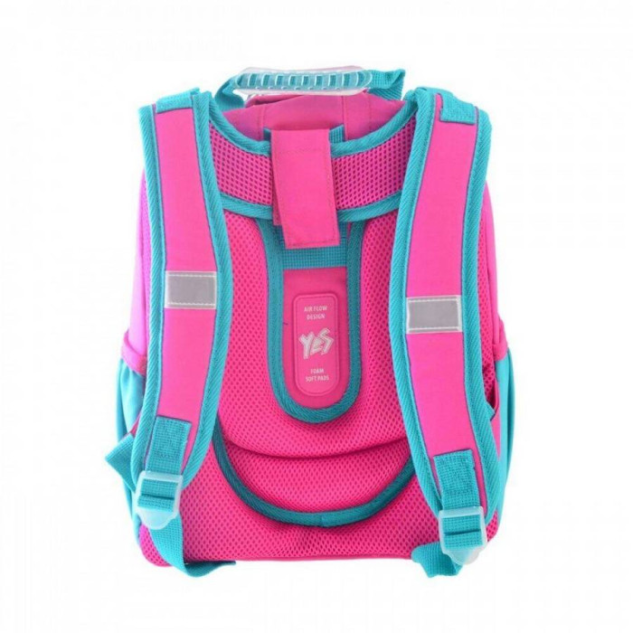 Особливості: виготовлений з матеріалу EVA (передня жорстка частина) і водовідштовхувального поліестеру, що забезпечує збереження речей в будь-яку негоду, а щільний каркас гарантує повну цілісність вмісту. Ортопедична спинка з елементами "дихаючої" сітки Air Mesh зменшує напругу м'язів спини, плечей і шиї, і забезпечує правильну поставу. Також у рюкзака комфортні м'які лямки регульованої довжини. Є зручна щільна ручка для носіння в руці. Для безпеки вашої дитини передбачені світловідбиваючі елементи.