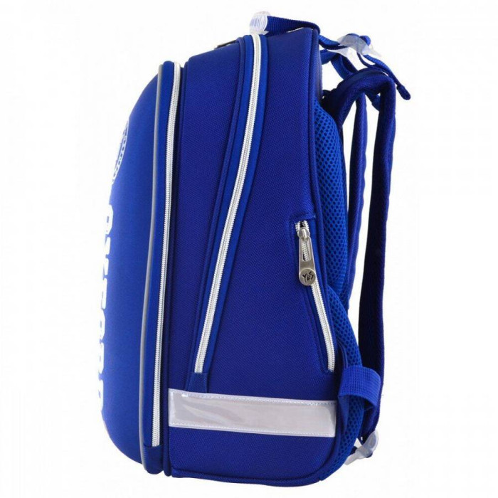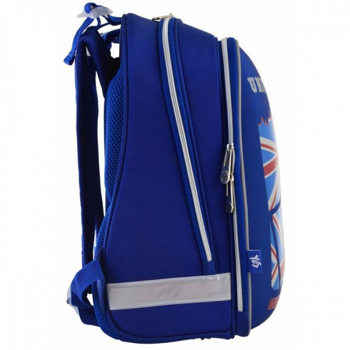 Особливості: виготовлений з поліестеру з водовідштовхувальним просоченням, що забезпечує збереження речей вашої дитини в будь-яку негоду, а щільний каркас гарантує повну цілісність вмісту (на лицьовій частині також є вставка з матеріалу EVA). Ортопедична спинка зменшує напругу м'язів спини, плечей і шиї, і забезпечує правильну поставу. Вона обшита "дихаючим" матеріалом Air Mesh. Також у рюкзака комфортні м'які лямки регульованої довжини (+нагрудний ремінь), щільне каркасне дно з двома гумовими ніжками, зручна прогумована ручка для носіння в руці. В цілях безпеки передбачені світловідбиваючі елементи з різних боків рюкзака.