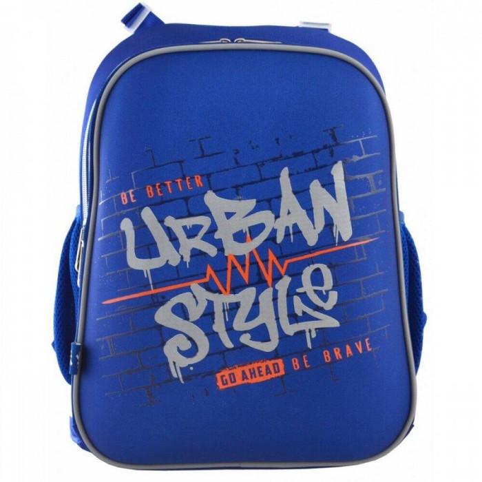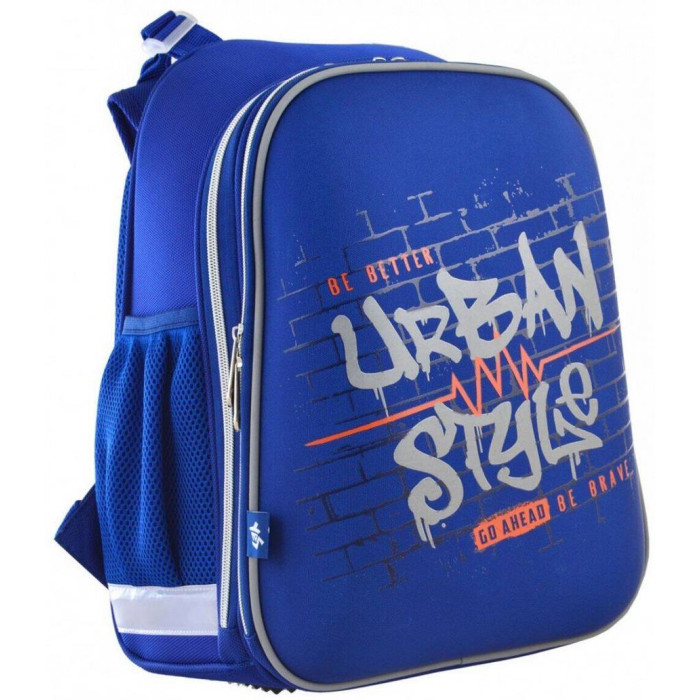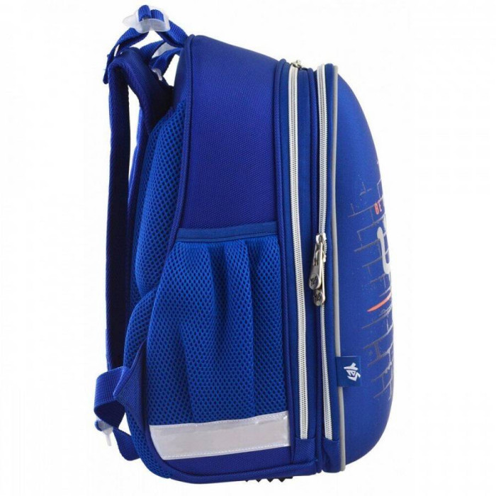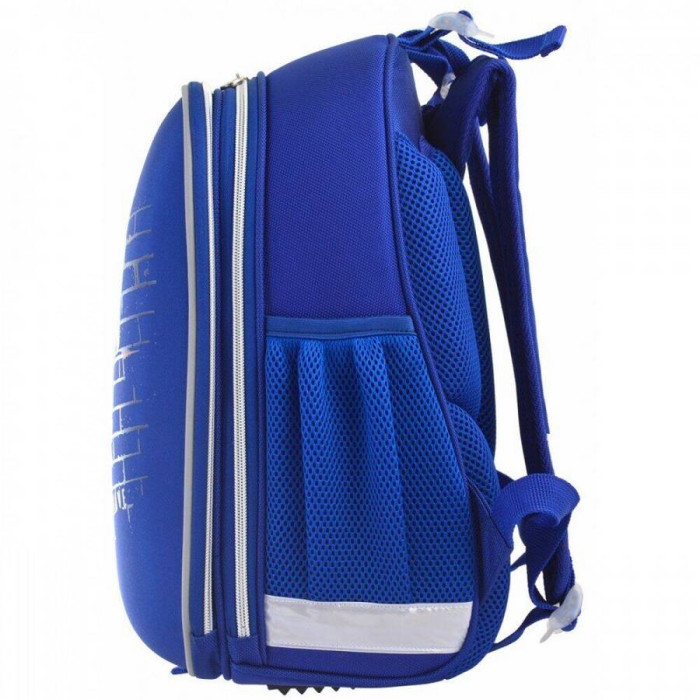 Особливості: виготовлений з поліестеру з водовідштовхувальним просоченням, що забезпечує збереження речей вашої дитини в будь-яку негоду, а щільний каркас гарантує повну цілісність вмісту (на лицьовій частині також є вставка з матеріалу EVA). Ортопедична спинка зменшує напругу м'язів спини, плечей і шиї, і забезпечує правильну поставу. Вона обшита "дихаючим" матеріалом Air Mesh. Також у рюкзака комфортні м'які лямки регульованої довжини (+нагрудний ремінь), щільне каркасне дно з двома гумовими ніжками, зручна прогумована ручка для носіння в руці. В цілях безпеки передбачені світловідбиваючі елементи з різних боків рюкзака.