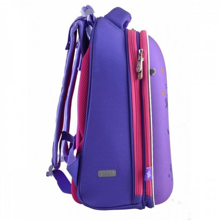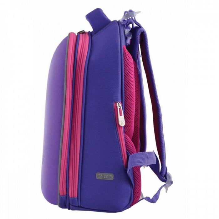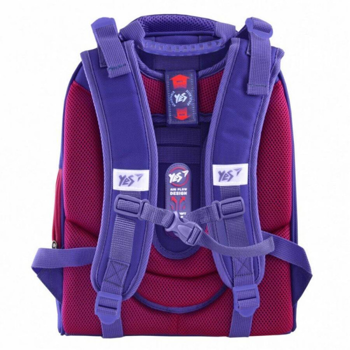 Особливості: виготовлений з поліестеру з водовідштовхувальним просоченням, що забезпечує збереження речей вашої дитини в будь-яку негоду, а щільний каркас гарантує повну цілісність вмісту (на лицьовій частині також є вставка з матеріалу EVA). Ортопедична спинка зменшує напругу м'язів спини, плечей і шиї, і забезпечує правильну поставу. Вона обшита "дихаючим" матеріалом Air Mesh. Також у рюкзака комфортні м'які лямки регульованої довжини (+нагрудний ремінь), щільне каркасне дно, зручна прогумована ручка для носіння в руці і м'яка ручка. В цілях безпеки передбачені світловідбиваючі елементи з різних боків рюкзака.