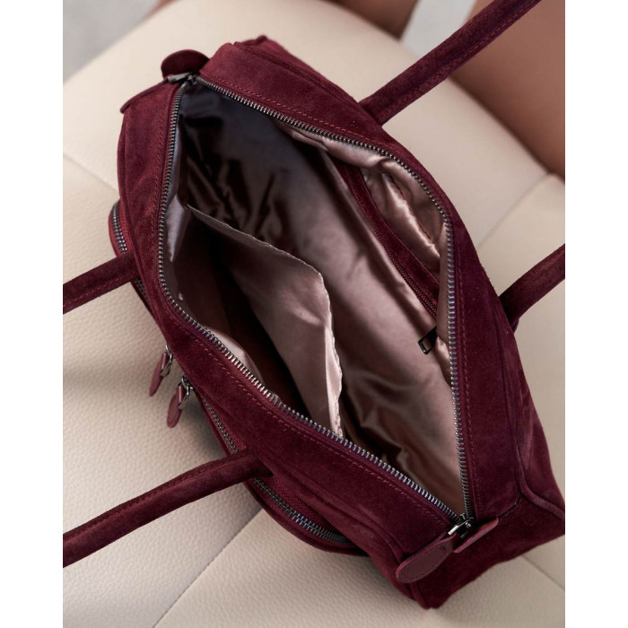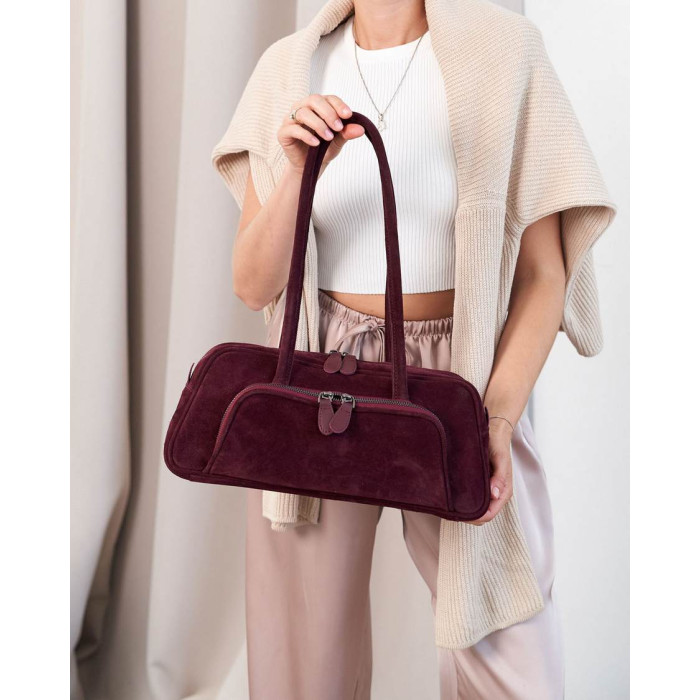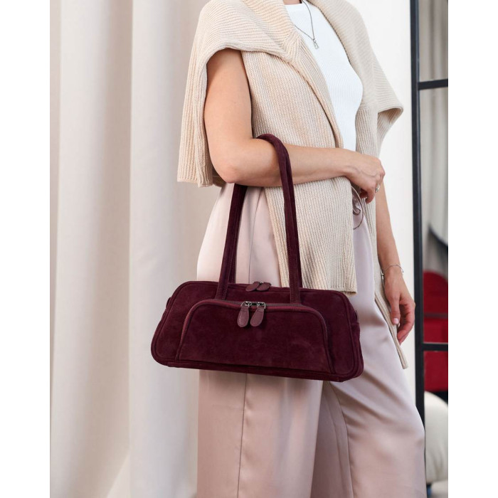 Замшева жіноча сумка К73057 від виробника «Welassie» Україна, колір бордовий, матеріал натуральна замша. Сумка відкривається за допомогою блискавки. Усередині сумка має одну відкриту кишеню і на змійці.Зовні є кишеня для дрібних предметів.