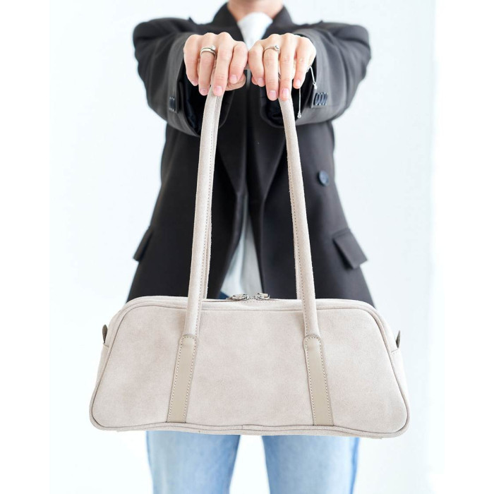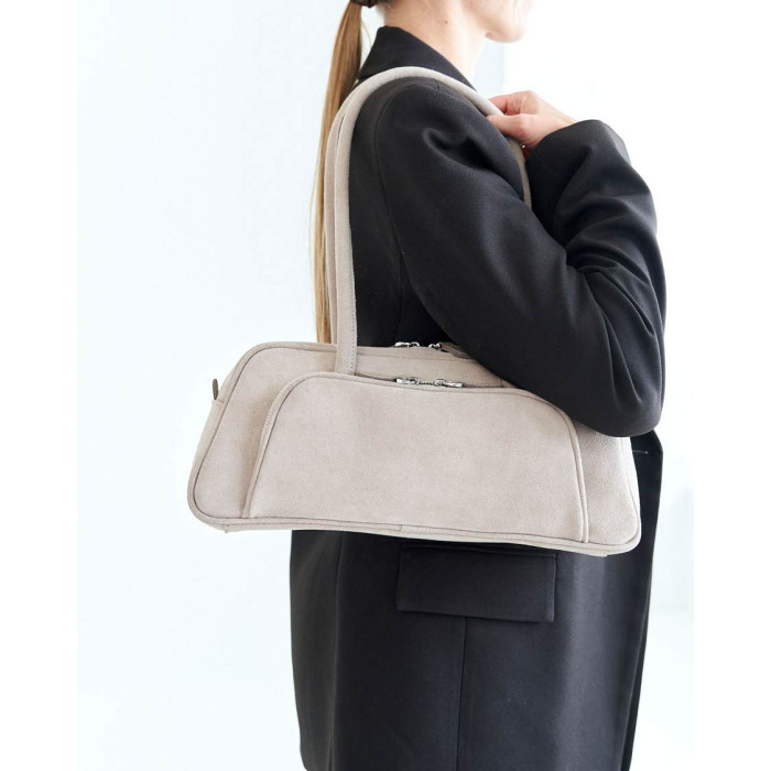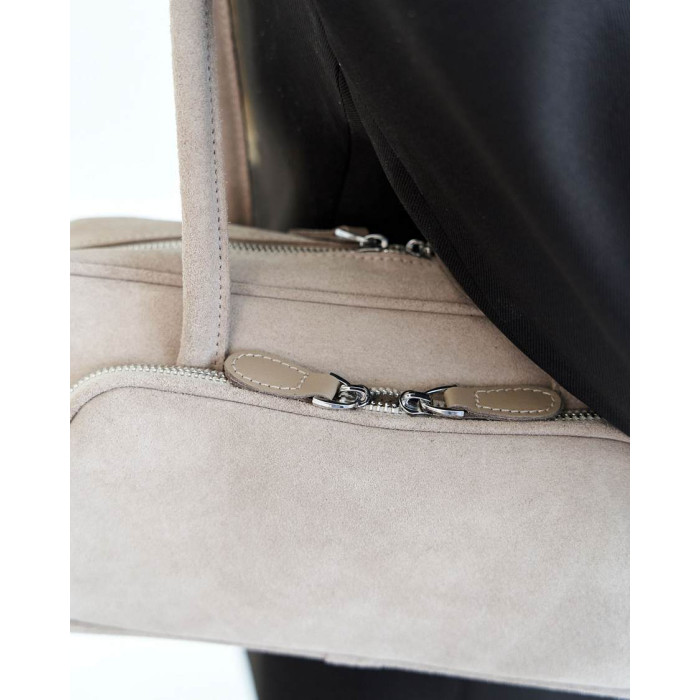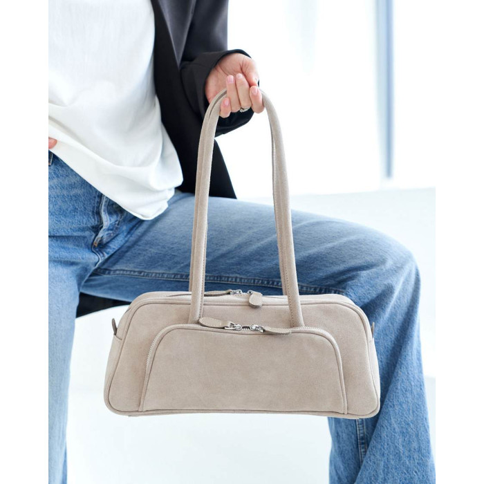Замшева жіноча сумка К73059 від виробника «Welassie» Україна, колір бежевий, матеріал натуральна замшева. Сумка відкривається за допомогою блискавки. Усередині сумка має одну відкриту кишеню і на змійці.Зовні є кишеня для дрібних предметів.