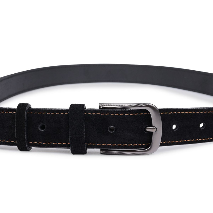 Шикарний замшевий чоловічий ремінь в універсальному чорному кольорі від українського виробника. Виготовлений з натуральної стійкої до зносу шкіри, яка відмінно себе показала під час експлуатації. Такий ремінь, безсумнівно, буде довго служити своєму власникові.