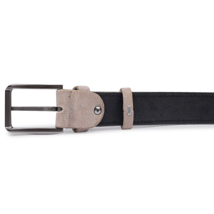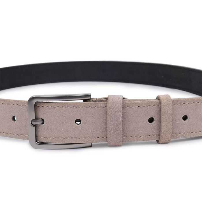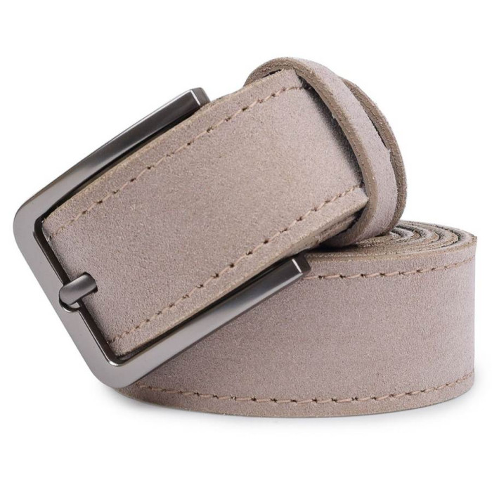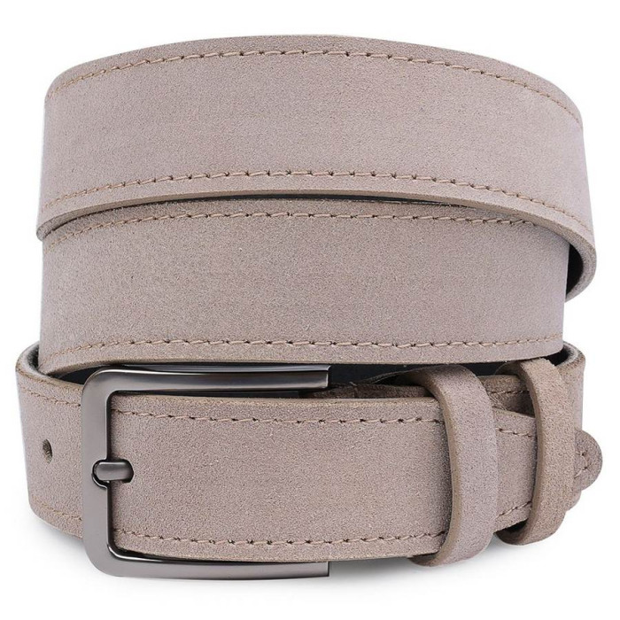 Чоловічий замшевий ремінь в сучасному і модному сірому кольорі з приємною на дотик фактурою. Матеріал виготовлення - високоякісна шкіра з відмінними характеристиками в експлуатації. Пряжка має строгий і акуратний дизайн і класичний механізм, що дуже надійно і зручно.
