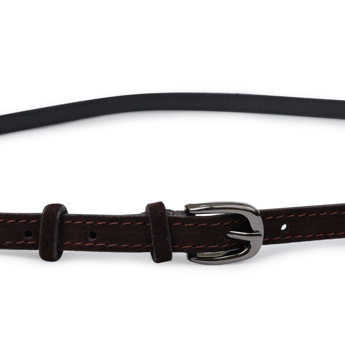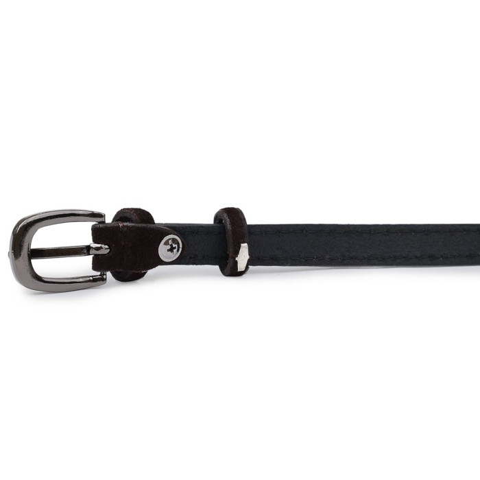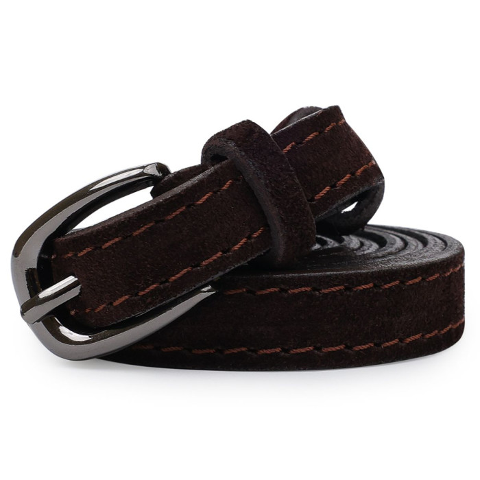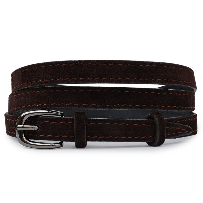 Гарний жіночий ремінь в стильному темно-коричневому кольорі, який має шикарний шоколадний відтінок. Матеріал виготовлення висококласна шкіра з високою стійкістю до зносу. Пряжка в даній моделі - класична, що дуже зручно в застосуванні. Цей ремінь стане незабутнім подарунком коханій жінці.