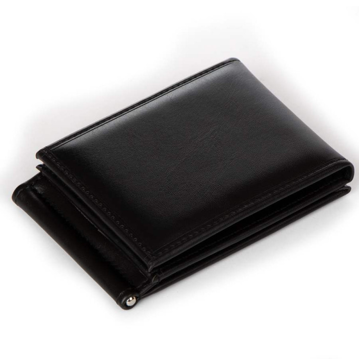 Магнітний затискач для банкнот. Зовні під клапаном знаходиться блок для 6 візитних карток.
