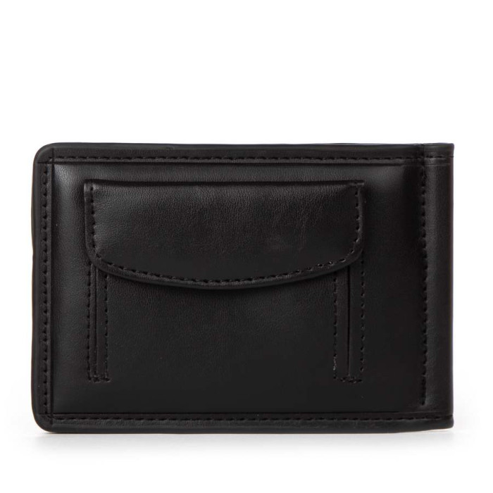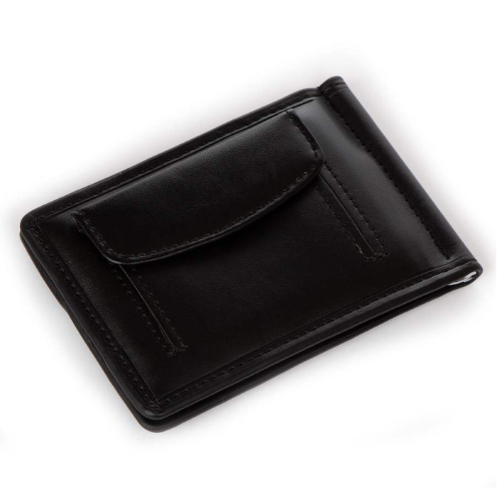 Магнітний затискач для банкнот. На фасаді знаходиться одна відкрита кишеня. На звороті є кишеня-монетниця на кнопці.
