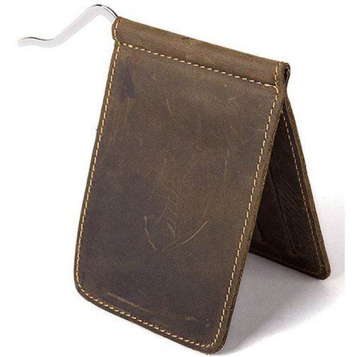 Компактний чоловічий затискач, з натуральної шкіри. Виріб дуже компактно, але при цьому купюри всіх номіналів поміщаються відмінно. Необхідний шкіряний аксесуар, який відмінно підкреслить стиль і статус свого власника.