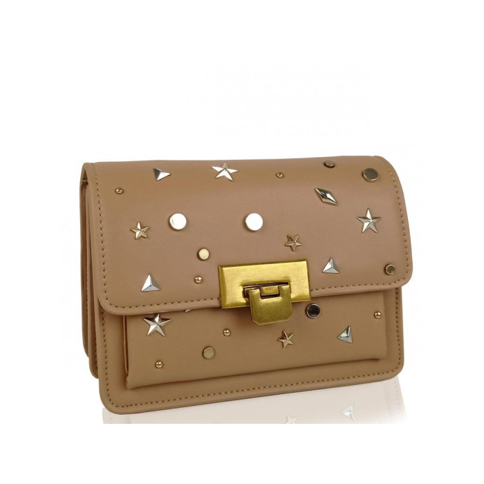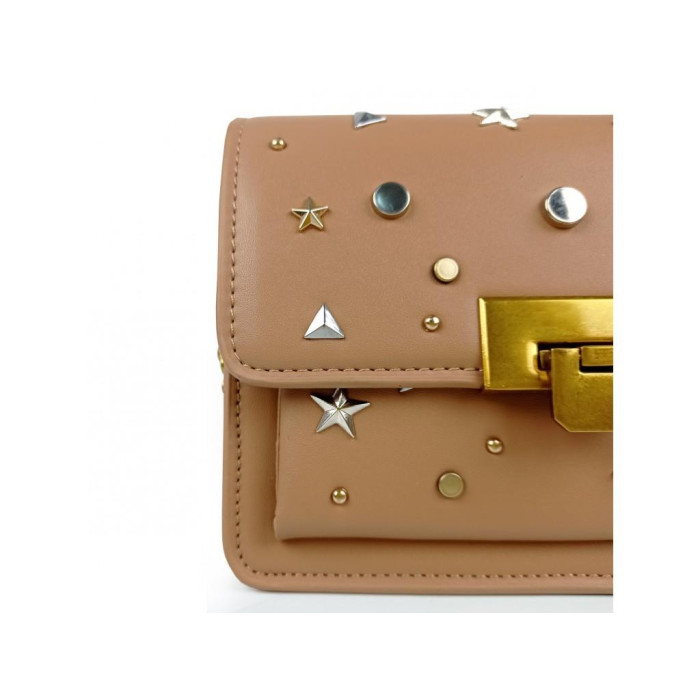Жіноча маленька сумка W16-808BG виготовлена з штучної шкіри і прикрашена металевими прикрасами.