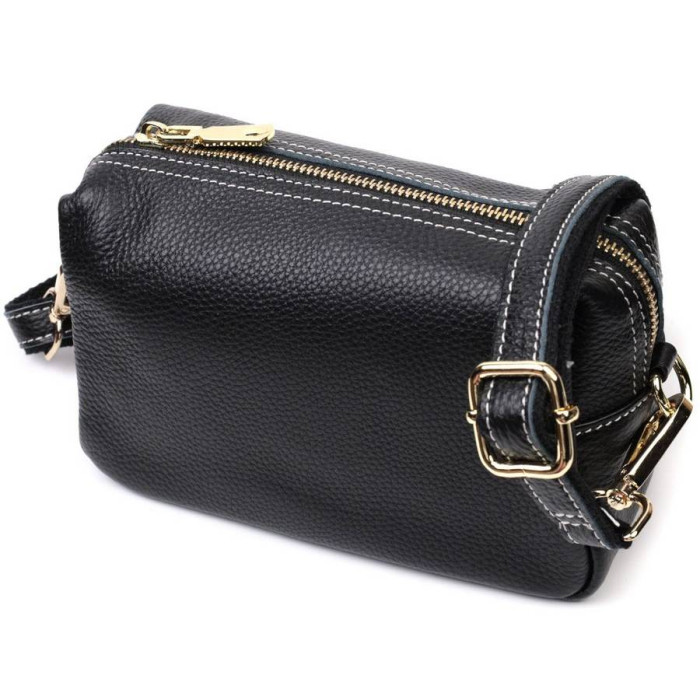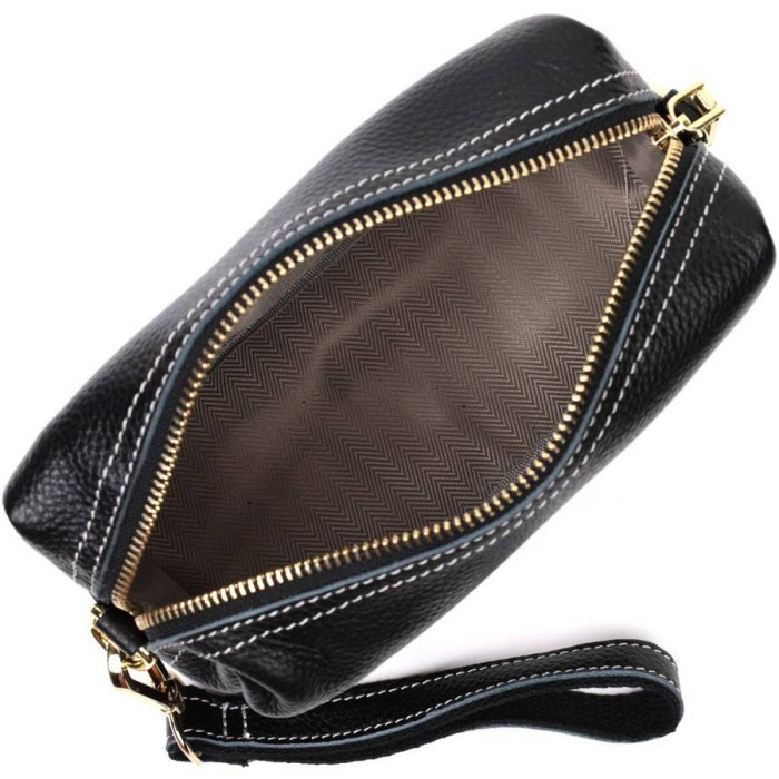 Якісна сумка-клатч із двома шкіряними ремінцями з якісної натуральної шкіри, яка довго носиться і не втрачає свого первісного вигляду. Аксесуар складається із одного основного відділення. Носити сумку можна в руці, на зап'ясті, на плечі і через плече, для цього є шкіряний знімний плечовий ремінь, а також знімний шкіряний кистьовий ремінь. У виробі використано якісну фурнітуру кольору жовтого золота. Універсальний варіант сумки як на вечір так і як сумочка на кожен день.