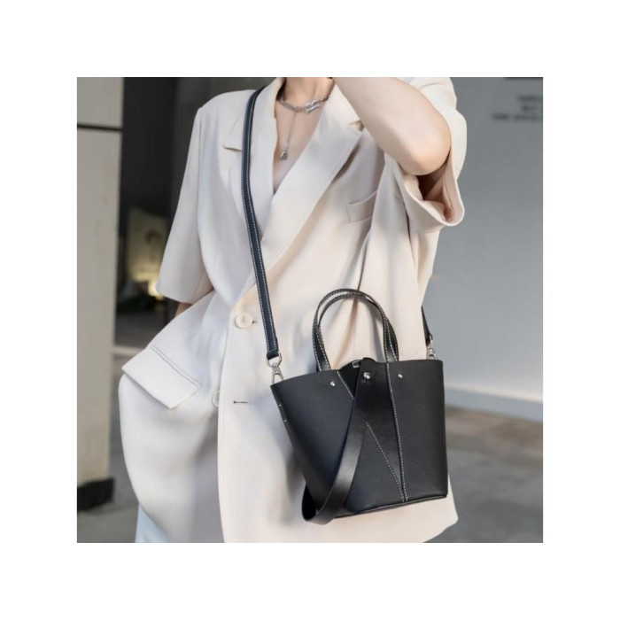Сумка Olivia Leather B24-W-9802A чорна з натуральної шкіри, зернистої фактури.