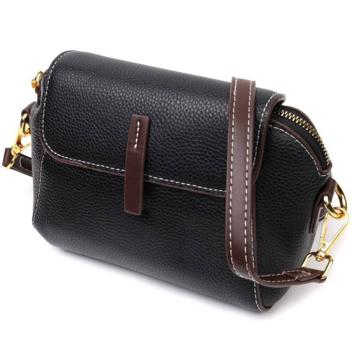 Практична жіноча сумка із ущільненим дном. Виріб пошитий з якісної натуральної шкіри, яка довго носиться і не втрачає свого первісного вигляду. Аксесуар складається з одного основного відділення, всередині якого кишеня-перегородка на блискавці, кишеня відкритого типу, потайна кишеня на блискавці та ще одна кишеня на блискавці зовні. Носити сумку можна в руці, на плечі і через плече, для цього є шкіряний ремінь, що знімається. У виробі використано якісну фурнітуру кольору жовтого золота. Універсальний варіант сумки як на вечір так і як сумочка на кожен день.