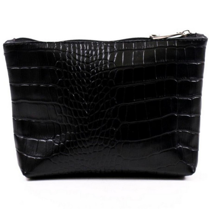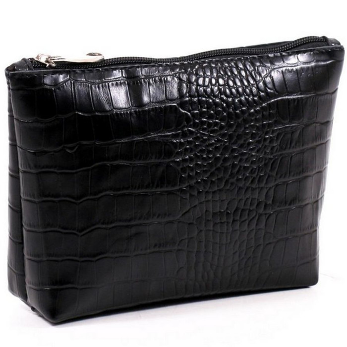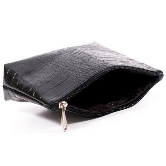Жіноча косметичка шкіряна k010201 кайман чорна виготовлена з натуральної шкіри