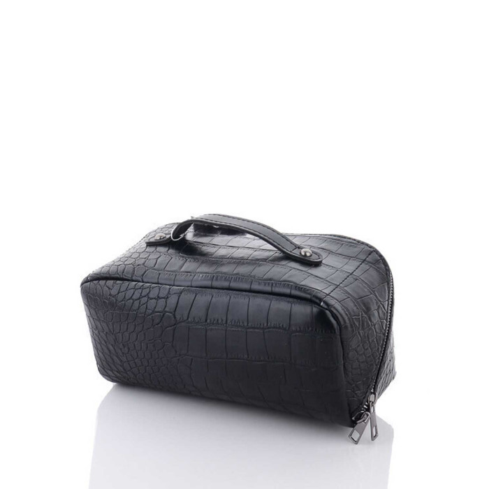 Косметичка жіноча 71004 від виробника «Welassie» Україна, колір чорний, матеріал екошкіра високої якості. Косметичка відчиняється за допомогою застібки. Всередині по краях має кишельки, посередині вшита косметичка на застібці.