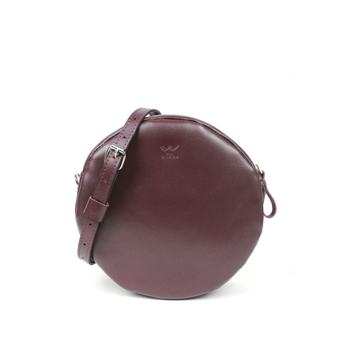 Розмір: - діаметр: 21 см - глибина: 6 см Матеріал: шкіра Застегивается на блискавку Всередині: - одне відділення - кишеня В комплекті: регульована шлею для шкарпетки через плече Фурнітура: металева, колір нікель