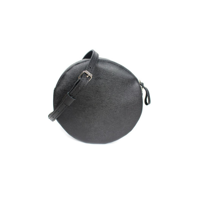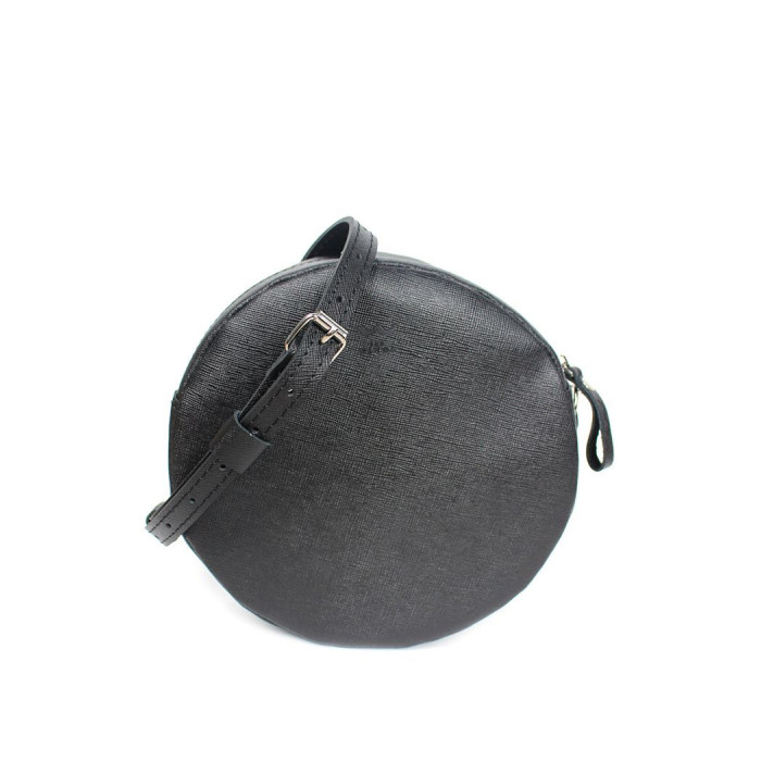 Розмір: - діаметр: 21 см - глибина: 6 см Матеріал: шкіра Застегивается на блискавку Всередині: - одне відділення - кишеня В комплекті: регульована шлею для шкарпетки через плече Фурнітура: металева, колір нікель