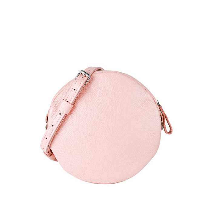 Розмір: - діаметр: 21 см - глибина: 6 см Матеріал: шкіра Застегивается на блискавку Всередині: - одне відділення - кишеня В комплекті: регульована шлею для шкарпетки через плече Фурнітура: металева, колір нікель