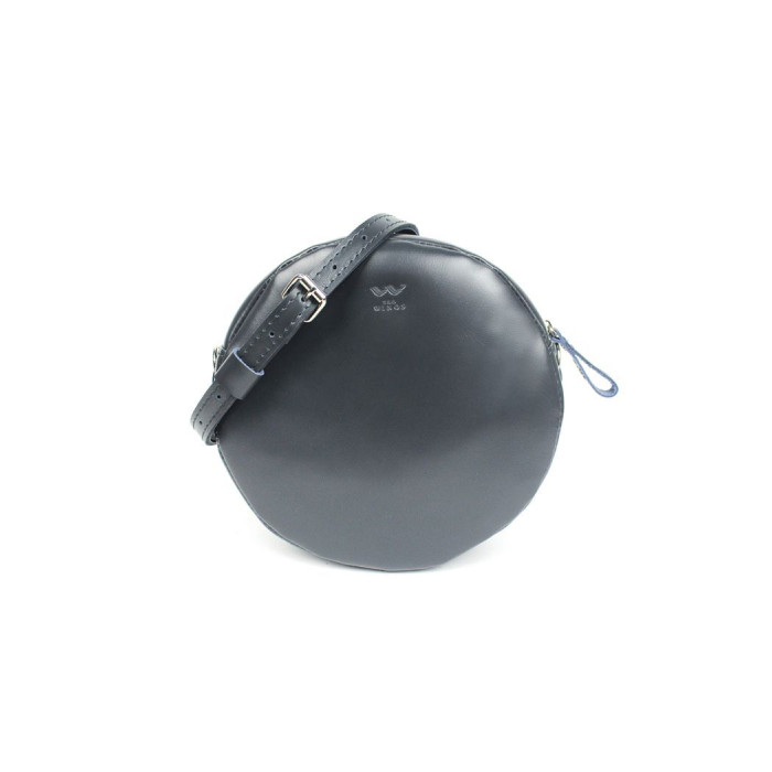 Розмір: - діаметр: 21 см - глибина: 6 см Матеріал: шкіра Застегивается на блискавку Всередині: - одне відділення - кишеня В комплекті: регульована шлею для шкарпетки через плече Фурнітура: металева, колір нікель