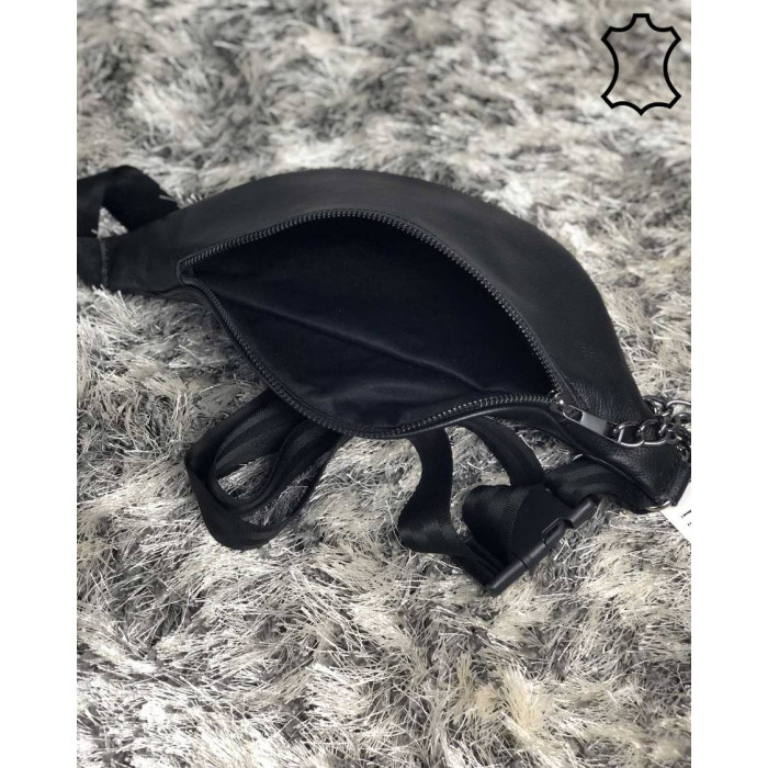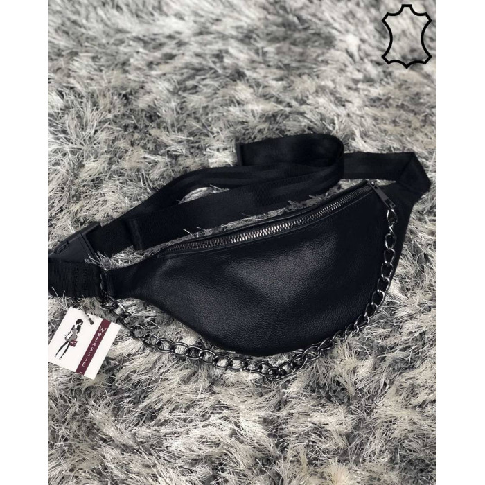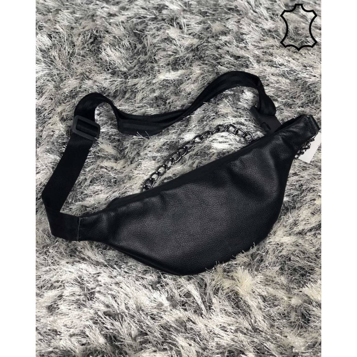 Бананка виготовлена з натуральної шкіри. Має одне відділення, яке відкривається за допомогою блискавки. Має широкий регульований ремінь, завдяки чому сумку можна носити не тільки на поясі, але і на грудях. Максимальна довжина ременя 108 см.