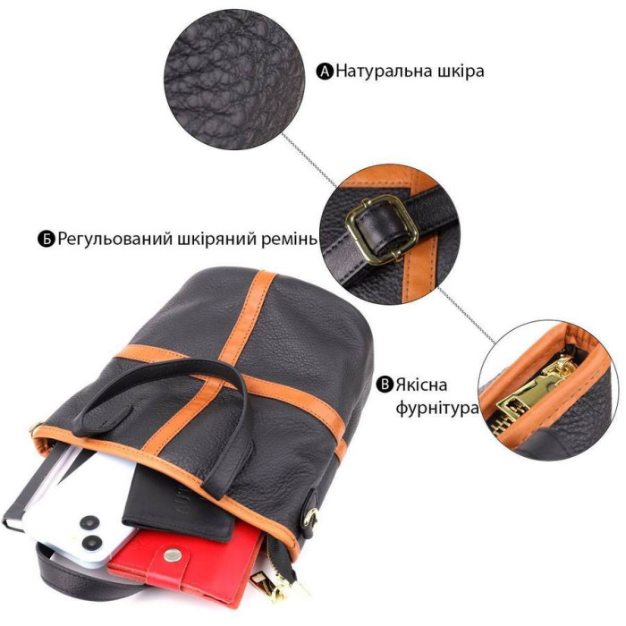 Елегантна жіноча шкіряна сумка у формі трапеції - це гармонійне поєднання суворої геометрії та витонченого стилю. Виконана з натуральної шкіри високої якості вона стане ефектним акцентом вашого повсякденного або ділового образу.