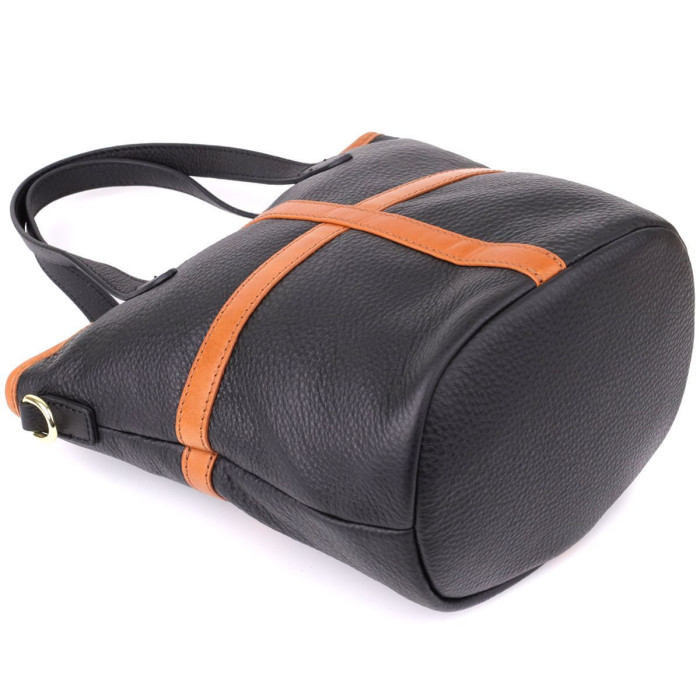 Жорстке дно надає сумці стійкість і зберігає її форму, а фурнітура кольору жовтого золота додає образу благородного блиску і робить аксесуар особливо жіночним.