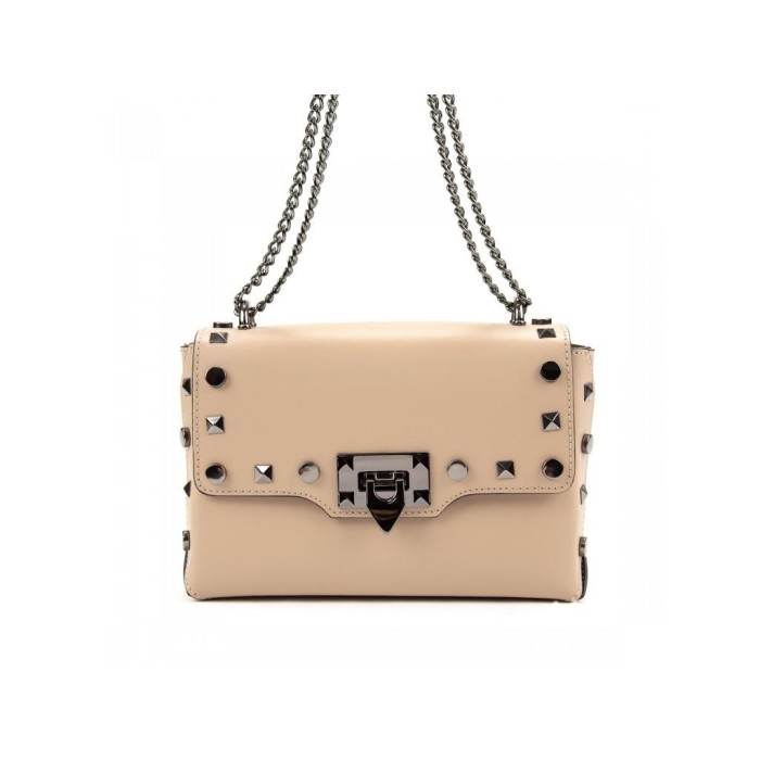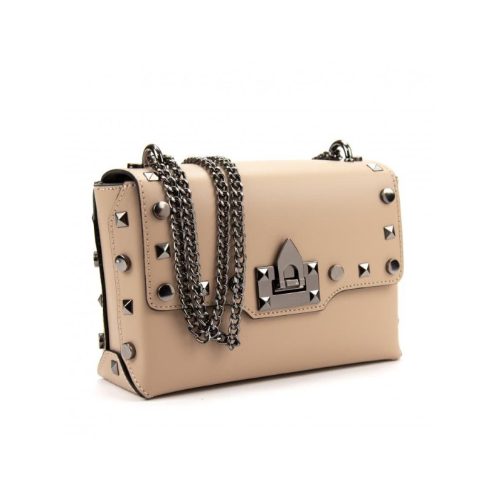 Жіноча сумка на ланцюжку Firenze Italy F-IT-9813B виготовлена з натуральної гладкої шкіри бежевого кольору.