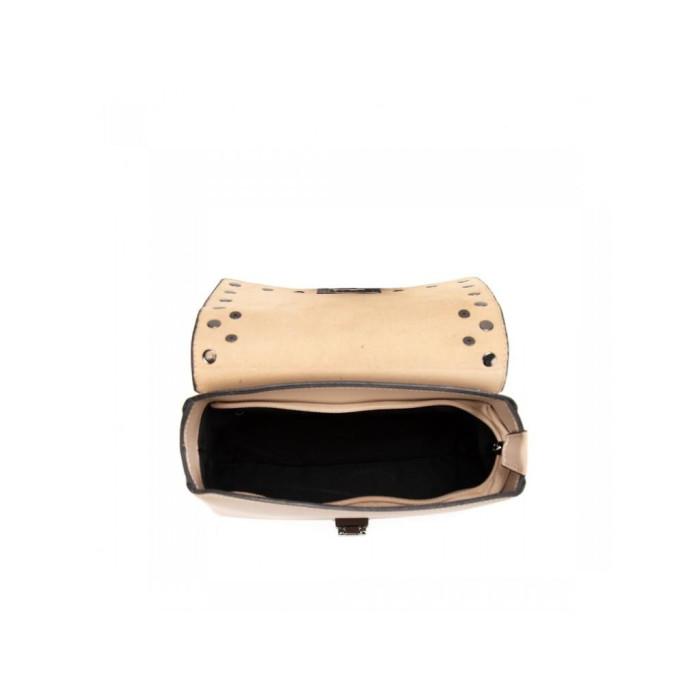 У сумці одне основне відділення, яке закривається на блискавку та клапан із металевою клямкою.