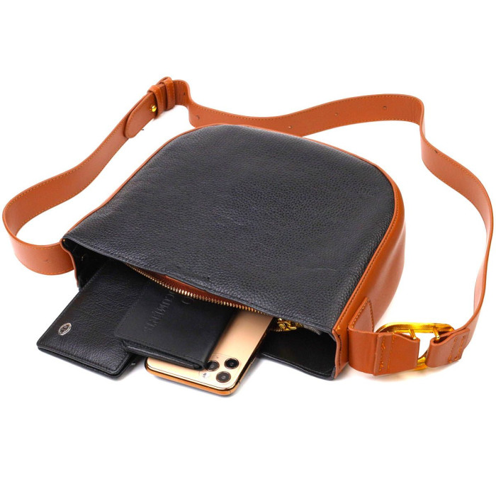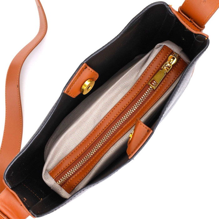 Оригінальна жіноча сумка на кожен день із натуральної шкіри високої якості. Виріб дуже зручний, можна носити на плечі та через плече. Модель доповнена якісною фурнітурою, колір жовтого золота. Аксесуар має одне основне відділення, всередині якого тканинна косметичка на блискавці. Стильна та зручна сумка яка розмістить усі дрібниці та навіть більше.