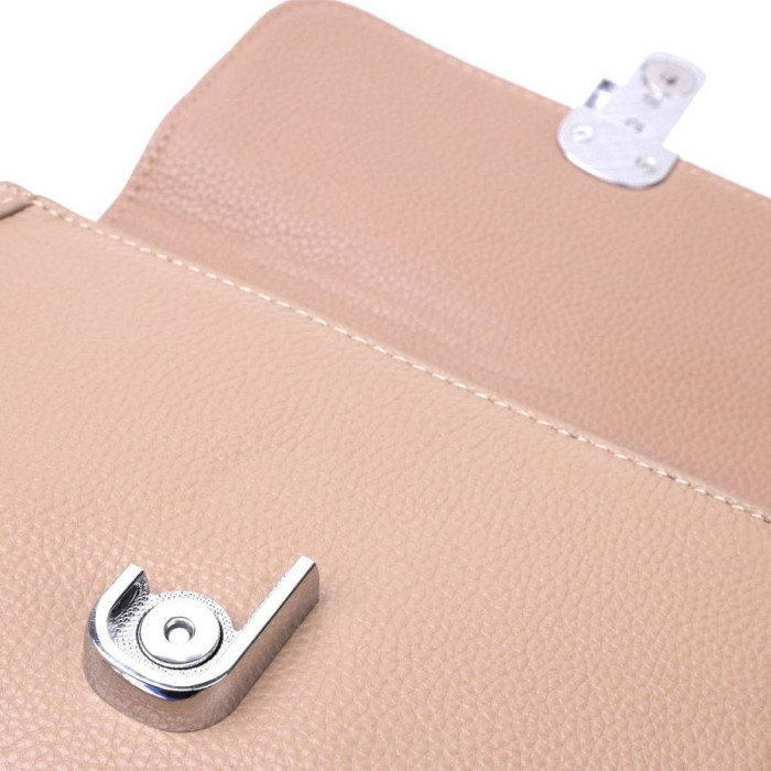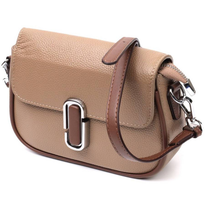 Цікава жіноча сумка з якісної натуральної шкіри, яка довго носиться і не втрачає свого первісного вигляду. Аксесуар складається з одного основного відділення всередині якого потайна кишеня на блискавці, кишеня відкритого типу та кишеня-перегородка, а зовні, на тильній стороні розташована кишеня на блискавці. Носити сумку можна в руці, на плечі і через плече, для цього є шкіряний ремінь, що знімається. У виробі використано якісну фурнітуру срібного кольору. Універсальний варіант сумки як на вечір так і як сумочка на кожен день.