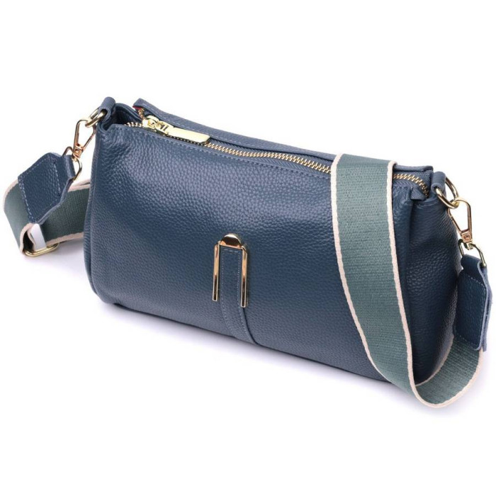 Стильна жіноча сумка з красивою металевою прикрасою посередині. Виріб пошитий з натуральної шкіри з високим показником якості та зносостійкості. Аксесуар складається з трьох основних відділень, потайної кишені на блискавці, кишені відкритого типу та кишені на блискавці зовні. Носити сумку можна під рукою, на плечі та через плече, для цього є текстильний ремінь, що знімається. У виробі використано якісну фурнітуру кольору жовтого золота. Універсальний варіант сумки як на вечір так і як сумочка на кожен день.