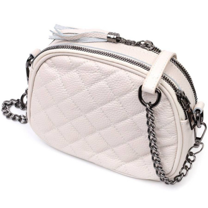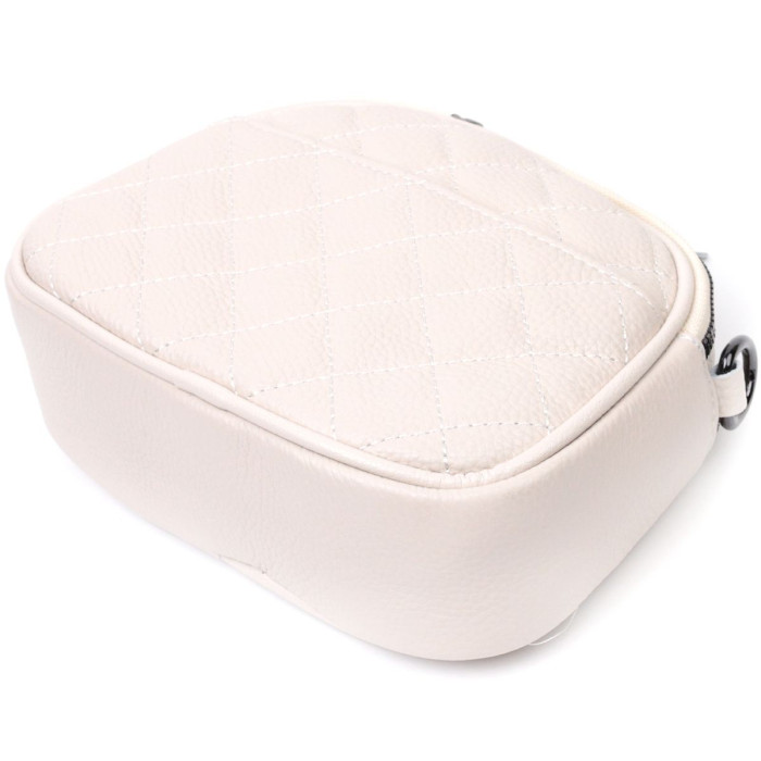 Стильна сумка для жінок невеликого розміру на два автономні відділення з натуральної шкіри флотар, стьобана модними ромбами. Аксесуар складається з двох автономних відділень, кишені відкритого типу, потайної кишені на блискавці та зовнішньої кишені відкритого типу. Носити сумку можна в руці, на плечі і через плече, для цього є шкіряний ремінь, що знімається. В аксесуарі використано якісну фурнітуру кольору темного срібла. Відмінний варіант сумки для жінок, які люблять якісні та стильні речі.