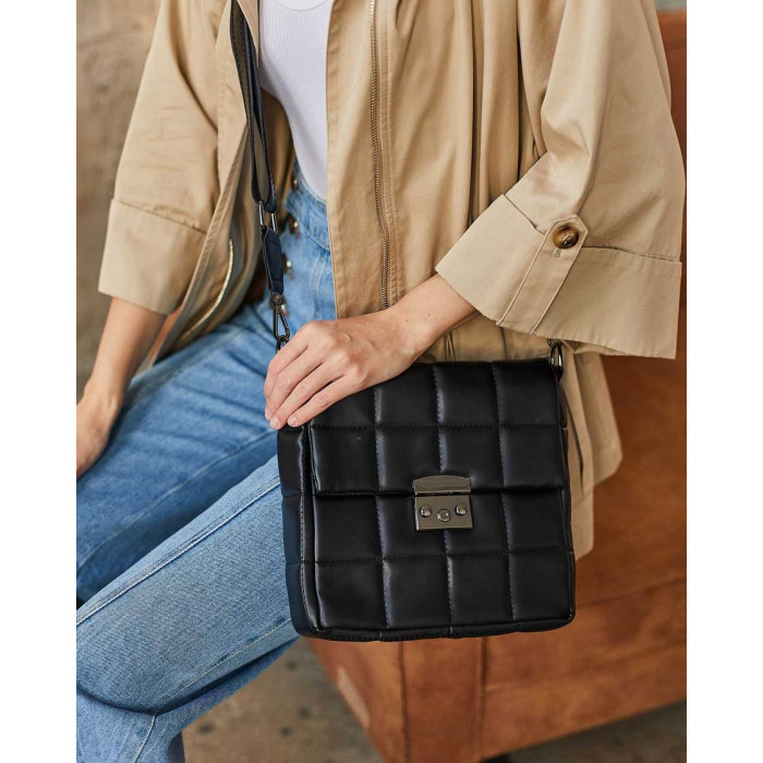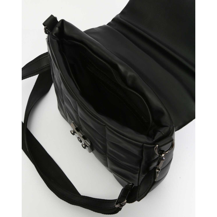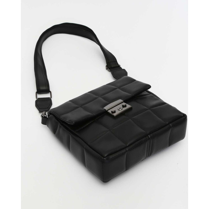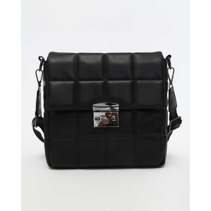 Сумка жіноча стьобана 67704 з екошкіри високої якості. Сумка відкривається за допомогою замку (два циліндричних виступи назустріч один одному) і блискавки. Всередині сумка на щільній підкладці. Сумка має дві кишені: на блискавці і відкрита. Також є зовнішня кишеня для дрібних предметів. Плечовий ремінь шириною 3 см. укріплений стропою і регулюється під різну довжину, максимальна довжина 135 см.