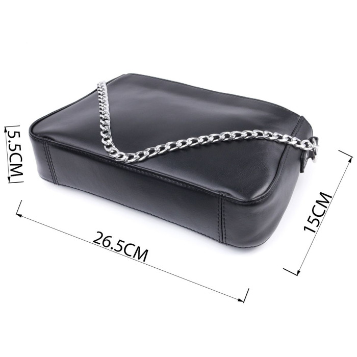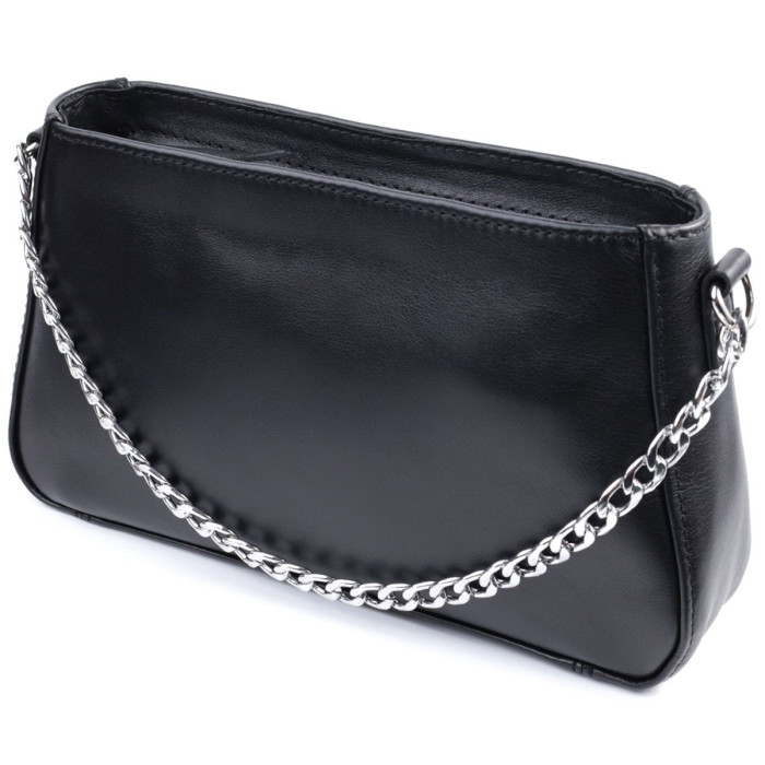 До Вашої уваги трендова сумка сезону, яка втілює в собі лаконічність та елегантність. Така сумка у модному світі має назву – сумка багет. Колір виробу – класичний чорний, фактура – гладка із глянцевим блиском. Матеріал виконання – натуральна м'яка шкіра із високими показниками зносостійкості. Відмінний варіант як кожного дня, так і на вечір. Ремінець ланцюжок надає їй блиску та нотку витонченості. Дана модель не тільки приваблива зовні, а й продумана всередині, розташування та кількість внутрішніх кишень дозволить якісно організувати простір усередині, щоб усі речі лежали на своїх місцях. Модель виготовлена з якісних матеріалів, має тверде дно та добре тримає форму.