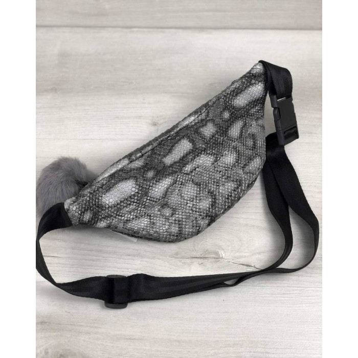 Сумка прикрашена пушком з кролика, прикріплений карабіном.