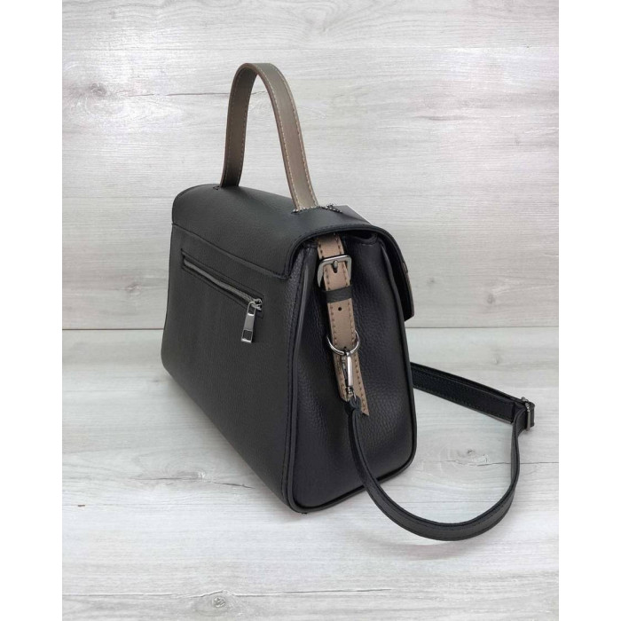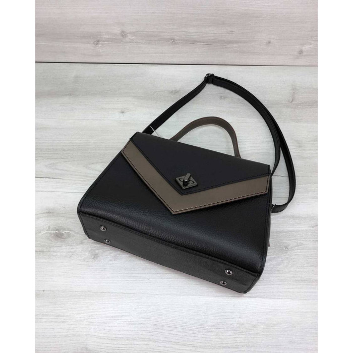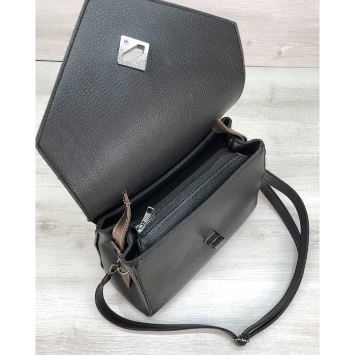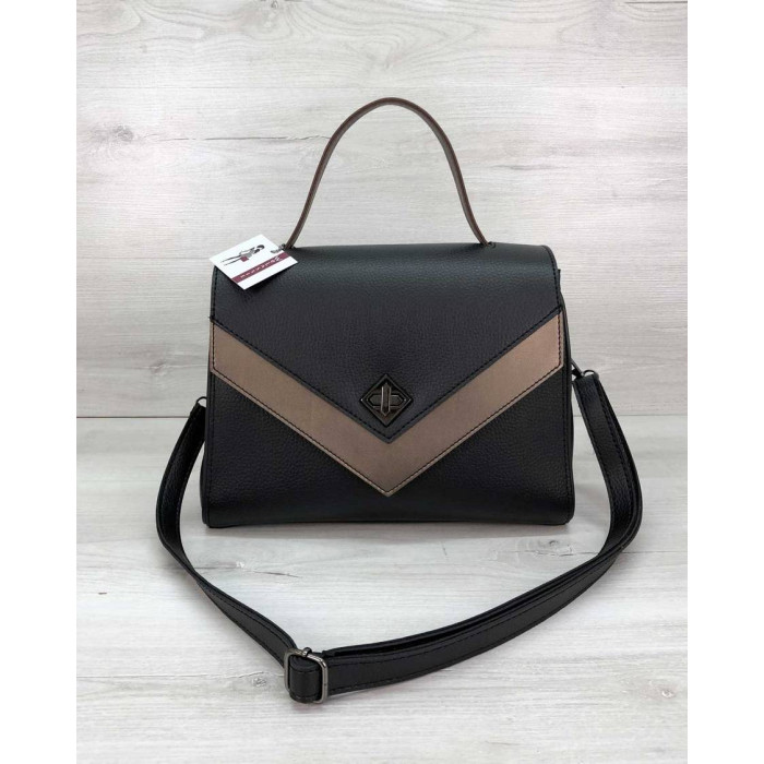 Стильна жіноча сумка Бетті чорна з бронзою компанії WeLassie виконана з морозостійкої еко-шкіри високої якості.