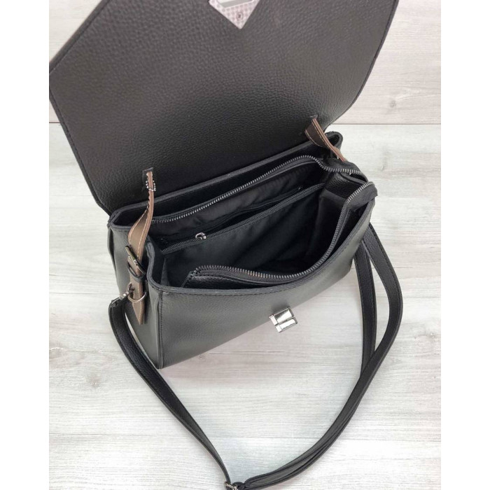 Стильна жіноча сумка Бетті чорна зі сріблом від компанії WeLassie виконана з морозостійкої еко-шкіри..